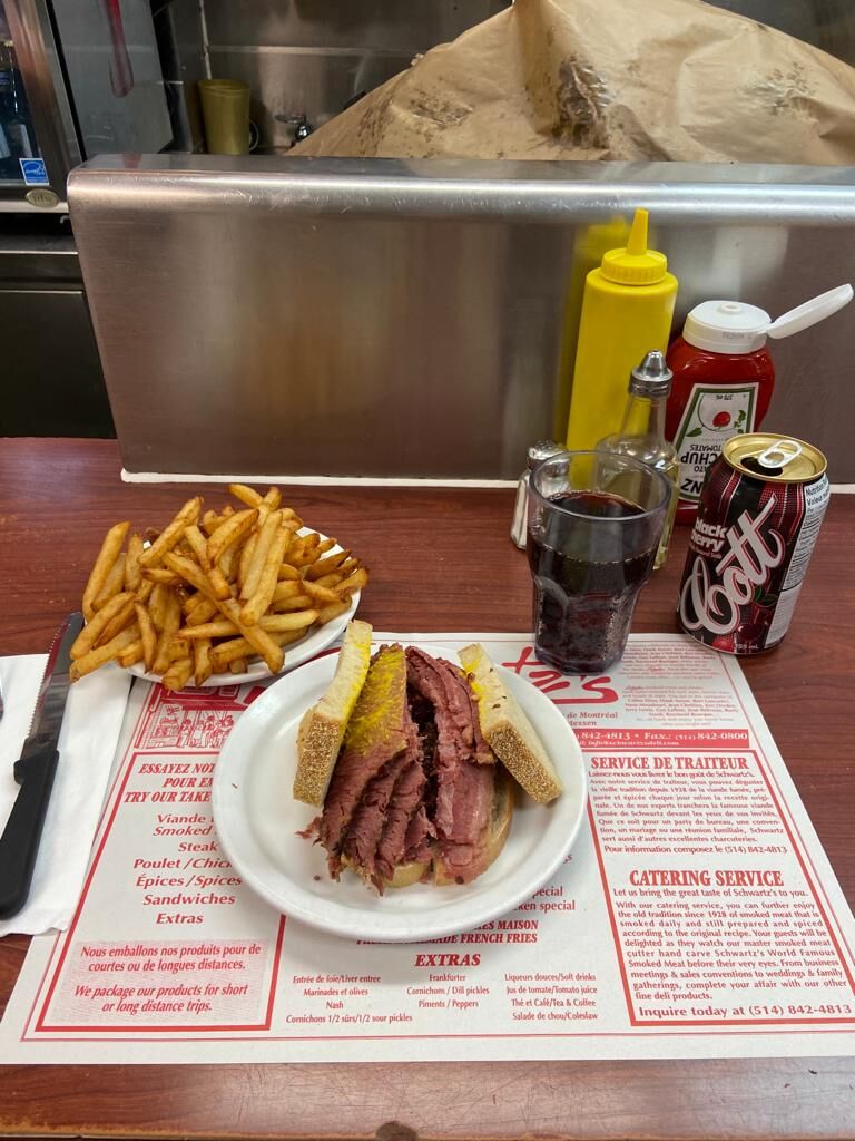 Of course, not wanting to do things by halves, I ate on the counter the famous smoked meat sandwich with a plate of fries and a black cherry soda. I didn't have to wait in line very long to get in and the service was very fast!